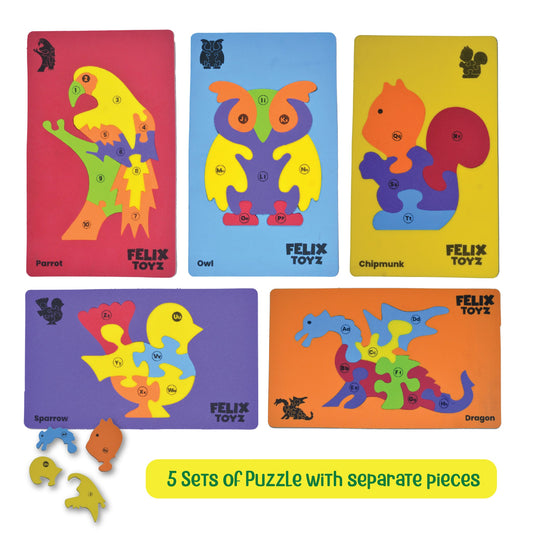 5-Set Birds & Animals Puzzle with A-to-Z Learning for Kids